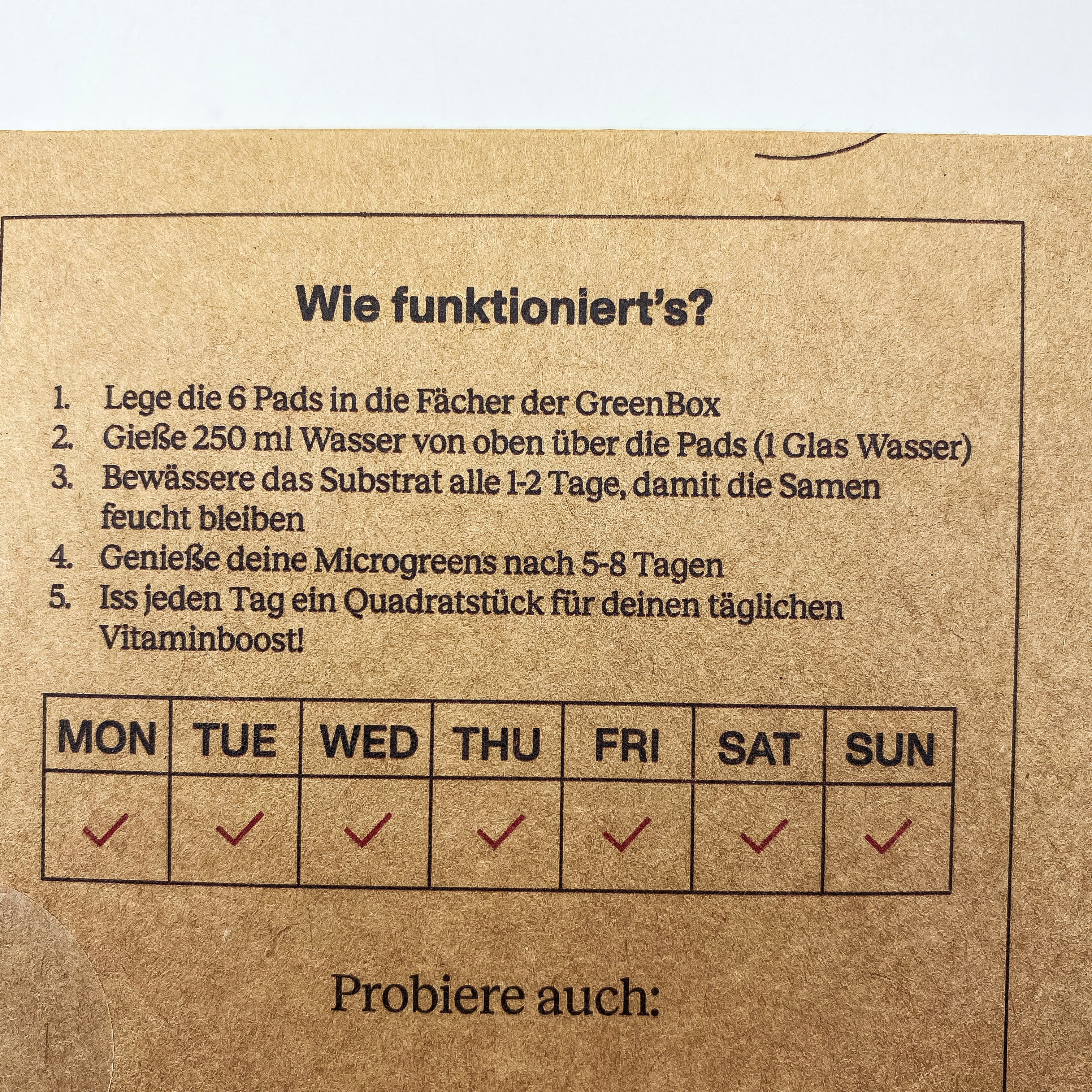 Díky naší jedinečné struktuře podobné tabulce čokolády jsou Microgreens-pady pohodlně rozděleny do šesti čtverců – každý ti dodá tvou denní dávku vitamínů. Jsou velmi snadné na manipulaci – a ještě snadnější na pěstování a sklizeň!