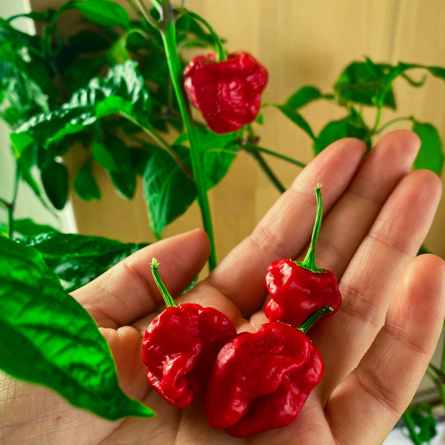 ⚠️Caution! Extremely hot chili! Even spicy lovers should not eat a whole pod at once (and according to the grower, only in company). Those unaccustomed to spiciness should not attempt it.