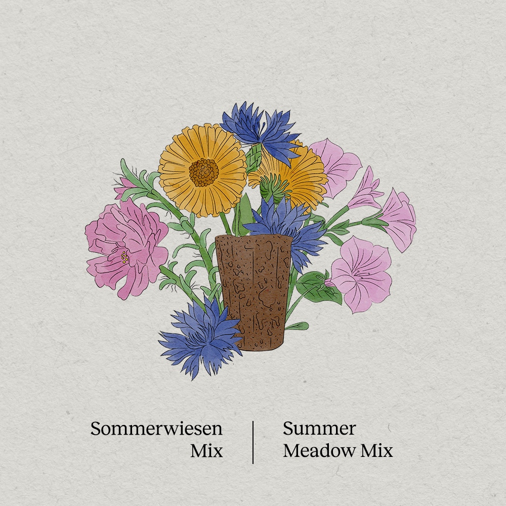 The striking funnel-shaped flowers of the proud petunia make a pink and purple statement. The orange and yellow of the industrious marigoldshine next to it. Growing to a height of only around 15 cm, the cornflower enchants with its unmistakable blue, while the portulaca roses produce their delightful flowers in several colors.