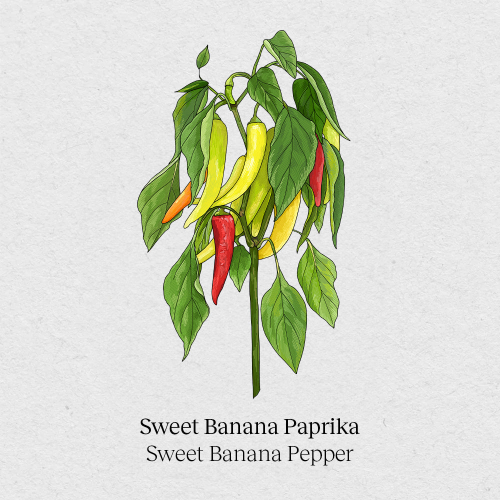 The Sweet Banana is a sweet, yellow bell pepper variety known for its elongated, banana-shaped fruits!