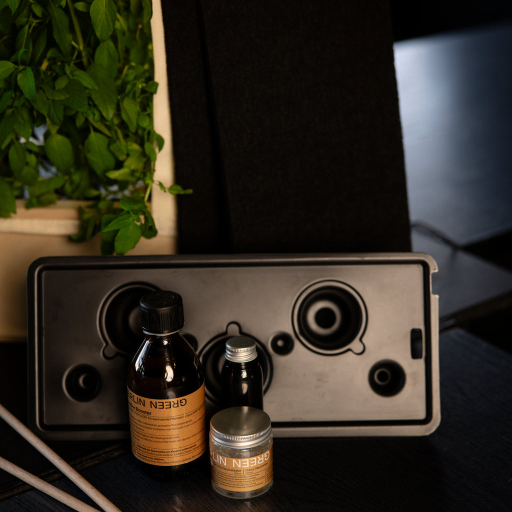 Für alle Green-Fans, die ihren GreenBox Plus-Heilkräuteranbau vor anderen Nasen schützen möchten, bieten wir wunderbar wirksame Geruchsneutralisierer in zwei Formen an: